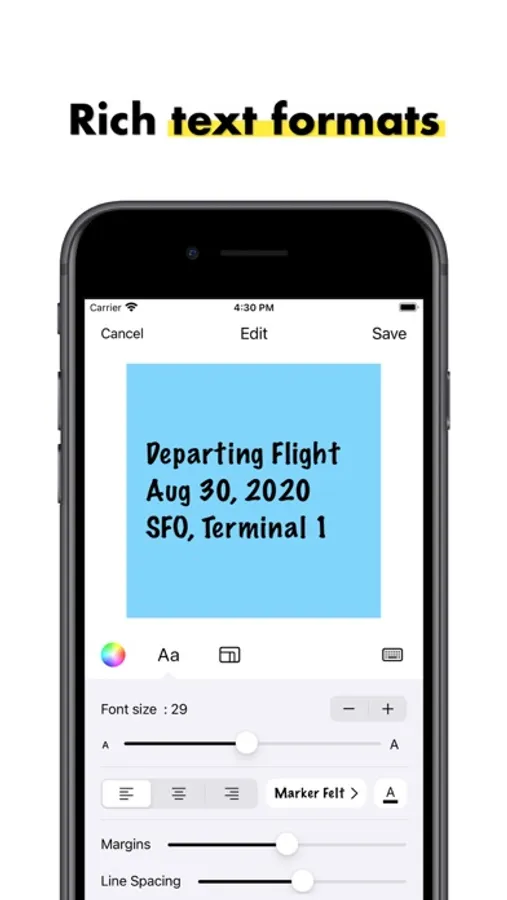 4. Rich Text Formatting: Enjoy advanced text formatting options such as alignment, margins, and line spacing.