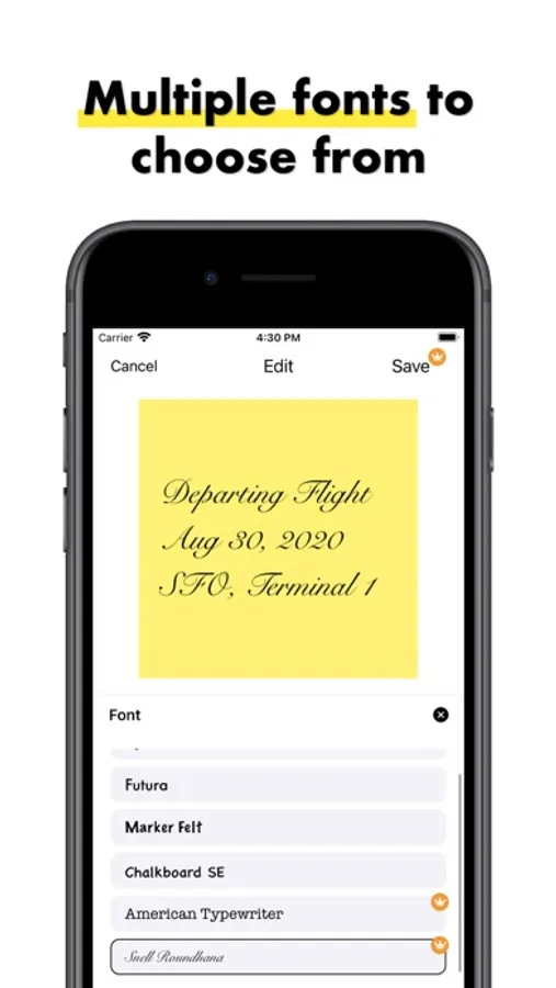 3. Elegant Fonts: Choose from a selection of exquisite fonts like Futura, Marker Felt, Chalkboard SE, and more.