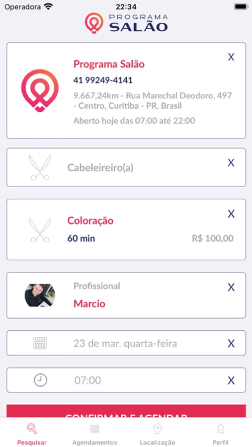 O Programa Salão conecta você com salões de beleza! Em poucos toques você lista todos os salões próximos a você, lista seus serviços, profissionais, e horários disponíveis. É só escolher e agendar!