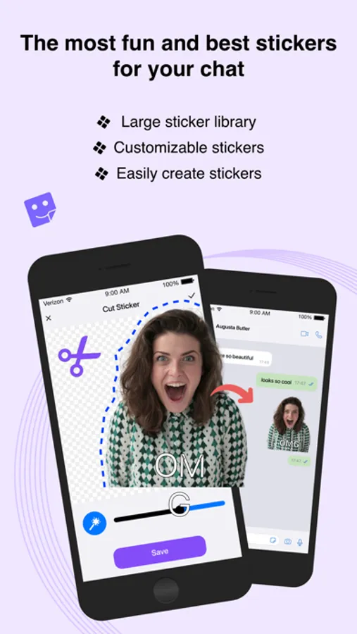 Create unique stickers from your own photos! Use your own face to express any emotion! Add more fun and awesomeness to the conversation! Try now!