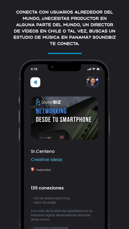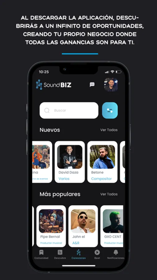 SoundBIZ es una herramienta dedicada al mundo del entretenimiento donde podrás intercambiar, descubrir y conectarte para crear o compartir tu talento directamente y sin intermediarios.