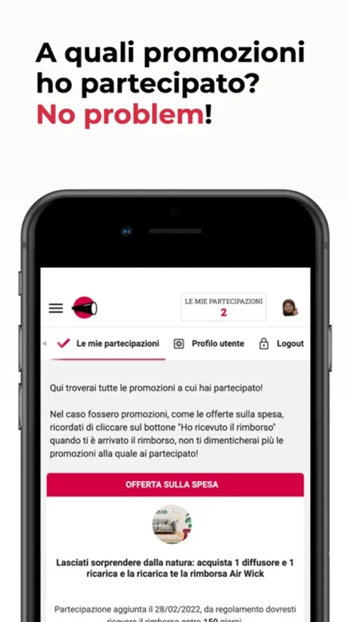 Da utente registrato potrai anche archiviare le tue partecipazioni di rimborso per poter ricevere una comoda notifica nel momento in cui dovresti aver già ricevuto l'accredito. Non ti dimenticherai più le promozioni alla quale hai partecipato!