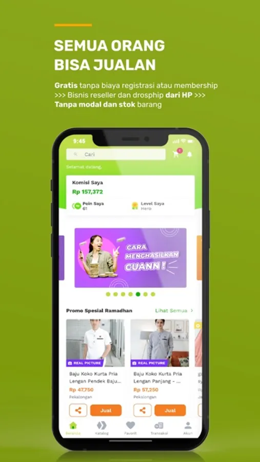 Tidak hanya mendapatkan keuntungan dari margin produk, Anda juga bisa mendapatkan komisi dan bonus lainnya. Mulai dari bonus setiap berhasil menjual, bonus target, bonus mengajak teman, dan masih banyak lagi. Semua bisa dicek langsung di aplikasi.