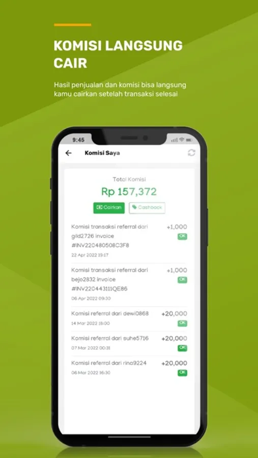 Keuntungan, bonus, komisi langsung masuk ke akun Anda di aplikasi dan bisa dicairkan dan di transfer langsung ke rekening Anda.