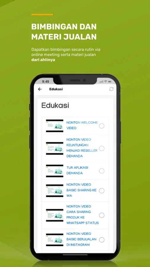 Dapatkan bimbingan dan materi belajar online secara rutin dari ahlinya. Upgrade skill Anda bersama komunitas dan teman-teman yang sudah sukses berjualan online.