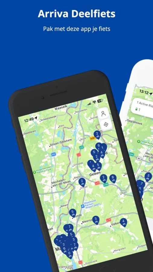 Boek de Arriva Deelfiets via de glimble app, download deze app om je rit voor te zetten met de Arriva Deelfiets. Met deze app kan je de Arriva Deelfiets openen, op pauze zetten en de rit beëindigen.