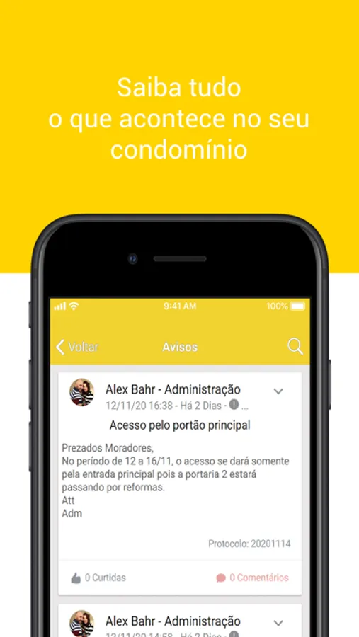 Receba notificações em seu celular de tudo que acontece no seu condomínio.