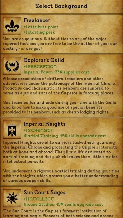 - select one of 7 character backgrounds and personalize your character with 50+ special perks that each affect gameplay in their own way