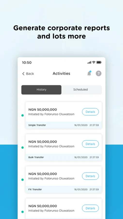 4. View recent activities, i.e., transactions pending, approval history, and transaction history