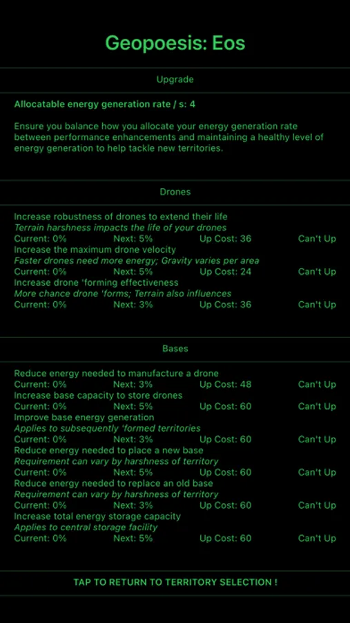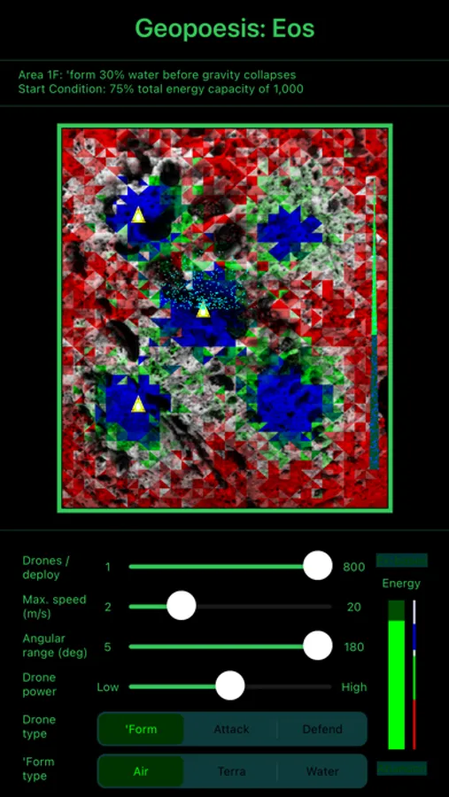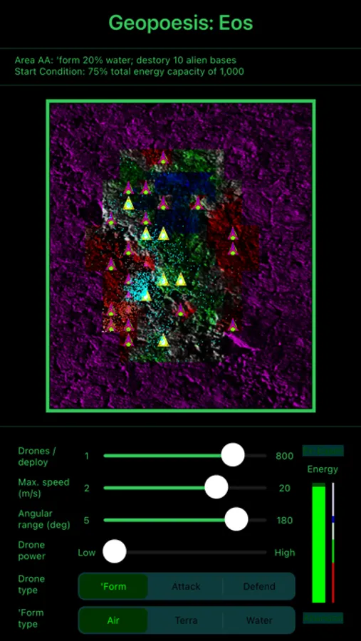 - Timing, energy management, shrewd selection of drone characteristics and base placement will be critical to successfully terraform each area ... And, don’t forget .. you may not be alone ! Think chess-like levels of strategy coupled with real-time action.
