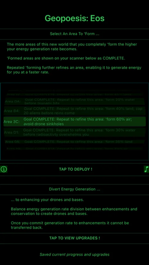 - Beating each level requires experimentation and careful observation of cause and effect. Geopoesis is all about experimentation and is set up not to punish repeated attempts with different strategies. Don't hesitate to abandon a level and try a different approach. Have fun failing. If you get frustrated just try a different strategy.