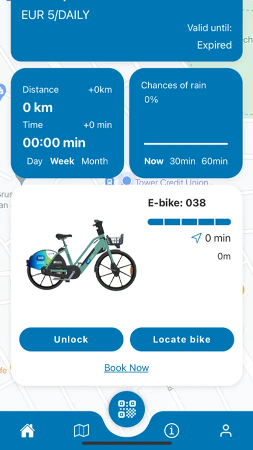 When you want to use a bike, first RESERVE a bike in the app before you arrive at your preferred Station. Once at the Station, scan the QR code of your reserved bike to unlock from Station. If the chain lock is on the bike, use code displayed in the app to unlock. You are now ready to ride! At the end of your journey return the bike from the station from which you took the bike.