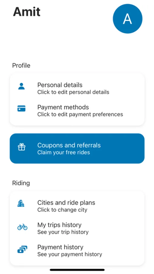 Download the app, then create and authorise your account in seconds by confirming your phone number and/or email. Select your town/city, pick a ride plan (Day Pass, or Monthly Subscription), add your payment method.