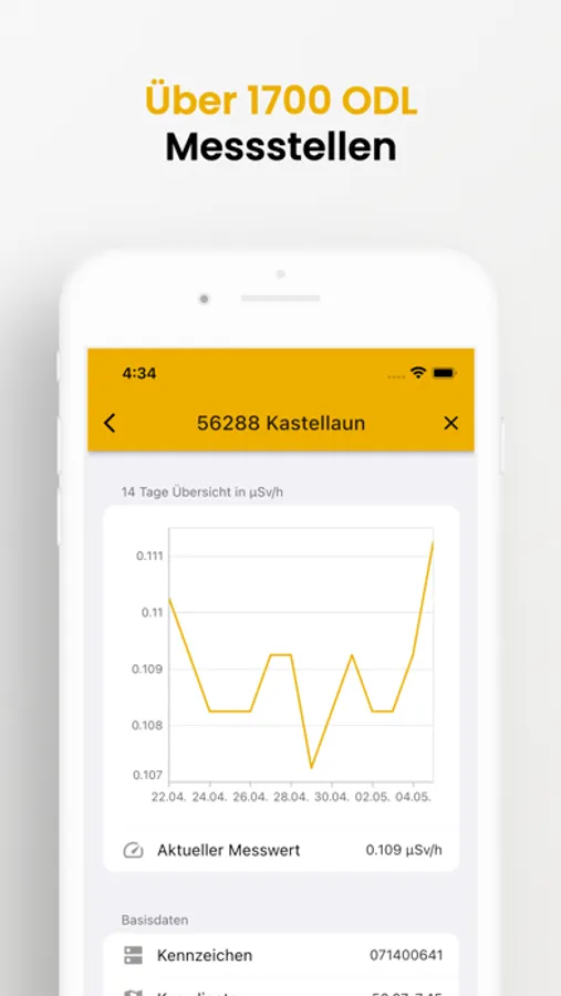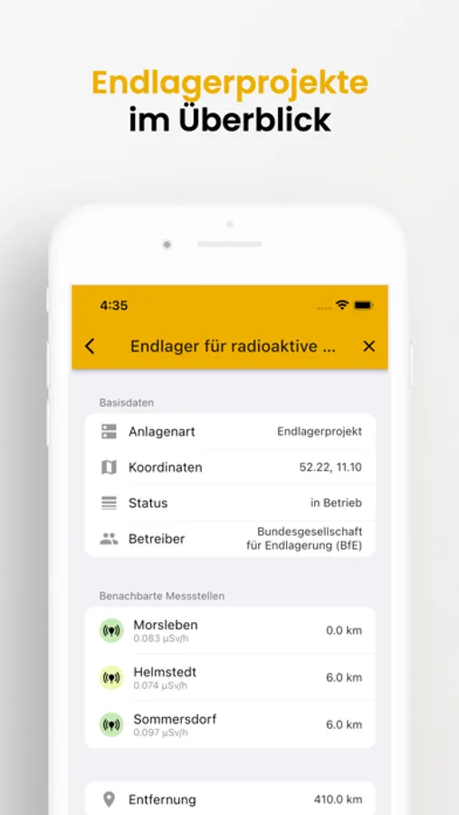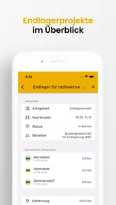 Einen enormen Mehrwert bietet die Funktion, die Messwerte mit den Kartenelementen zu verschneiden. So ist es beispielsweise möglich, Strahlungswerte in der Umgebung eines Atommüll Endlagers oder eines Kernkraftwerkes einzusehen und die Entwicklung zu beobachten. Durch antippen einer benachbarten Messstelle gelangt man in die Detailansicht der gewählten Messstelle.