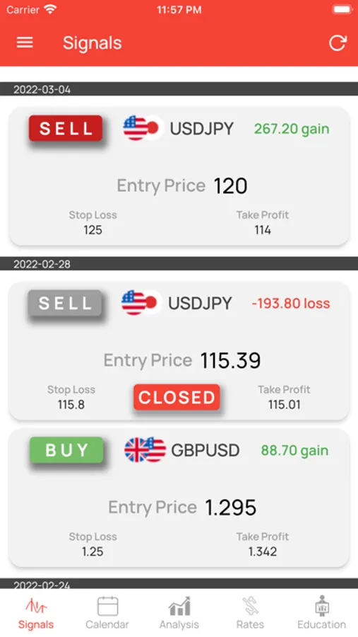 Take our signals to your phone to help you trade better. Follow our live signals on all major forex currency pairs, cryptocurrencies, commodities and stock indices.