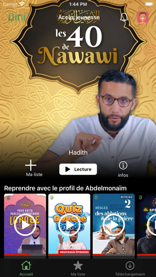 Dini, qui signifie "ma religion", est un espace sur lequel vous allez pouvoir apprendre votre religion en famille.