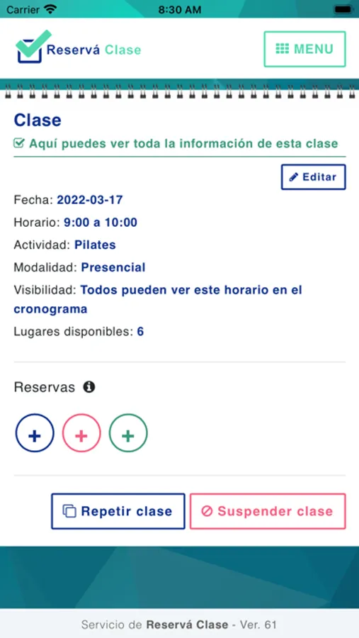 Un sistema único en el mercado, pensado especialmente para las actividades que requieran turnos para clases, como por ejemplo, estudios de Pilates o Yoga.