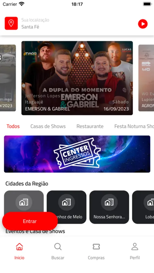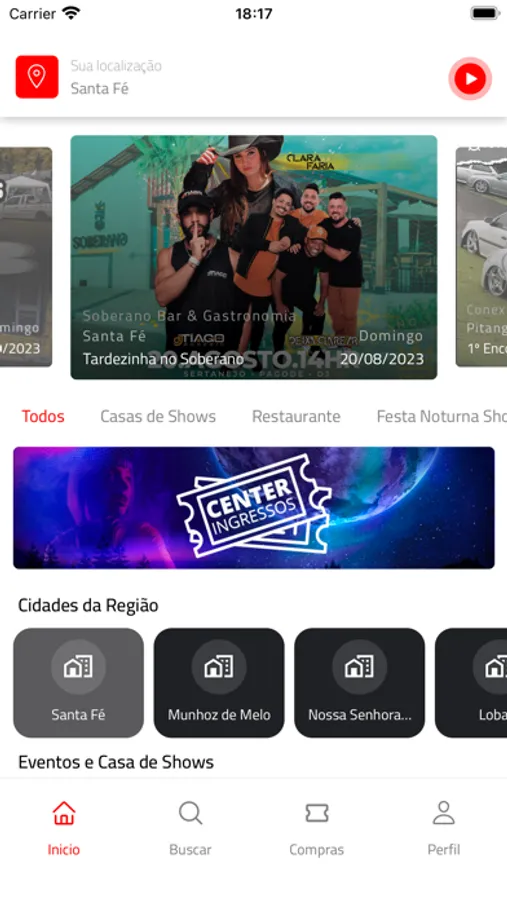 Nunca foi tão fácil comprar e armazenar seu ingresso no seu celular. No aplicativo Center Ingressos, você tem acesso aos eventos de sua região, pode comprar sem sair de casa, usando apenas seu celular, com muita facilidade e rapidez.