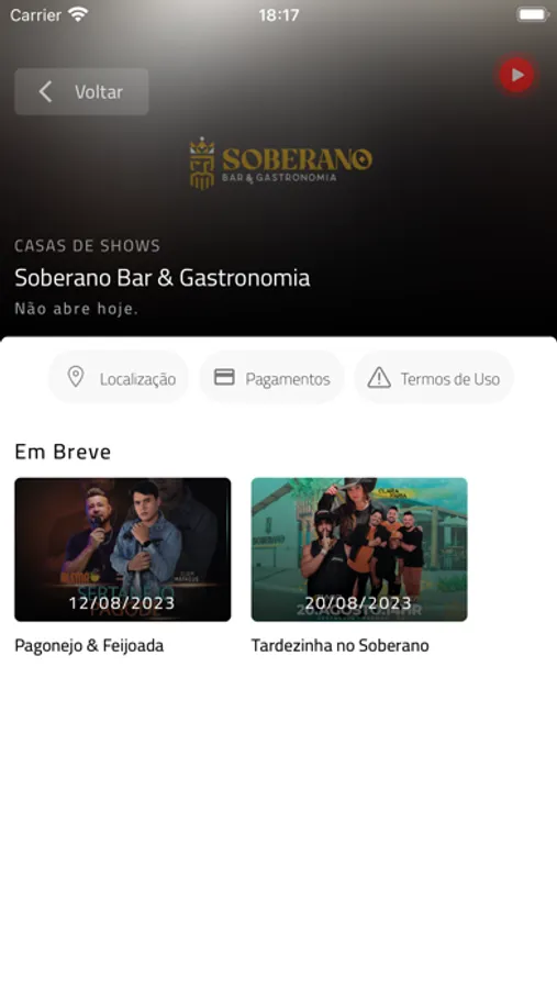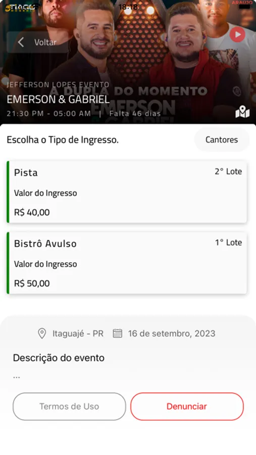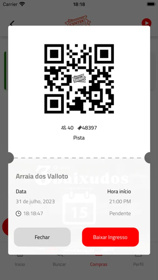 Os eventos estão divididos por região e categorias, como festas, baladas, festivais e muitos outros. Ao escolher seu evento o seu ingressos ficará armazenado em compras para efetuar o pagamento, e após pagar será gerado seu QR code para entrar no evento.