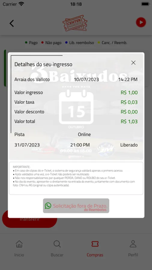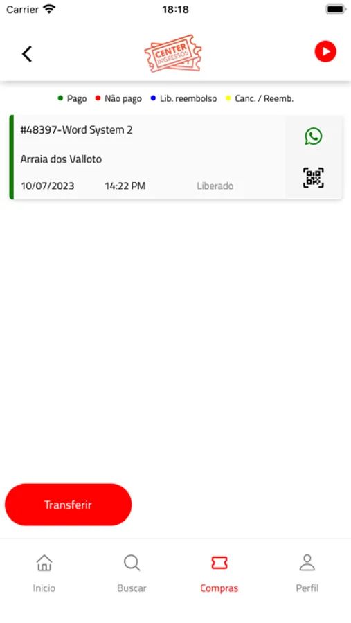 na Center Ingressos é possível transferir o seu ingresso para outra pessoa usando a ID que é criado pelo site, individualmente para cada usuário. Quem recebe o ingresso pode estar efetuando o pagamento caso não estivesse pago ainda e depois será possível entrar no evento.