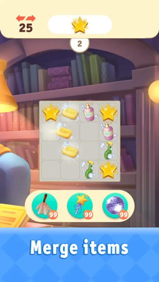 Easy controls, simple tap and move items around the board, collect 3 items into one improved item, use extra merge features to get bonus items, and don't forget to keep track of your moves, because they are limited!