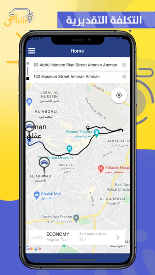 Use Nashama to order a Yellow cab in Amman