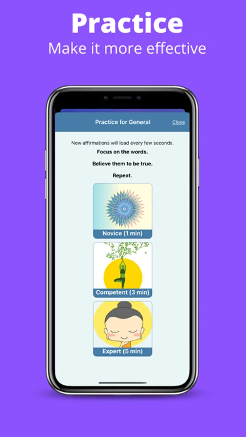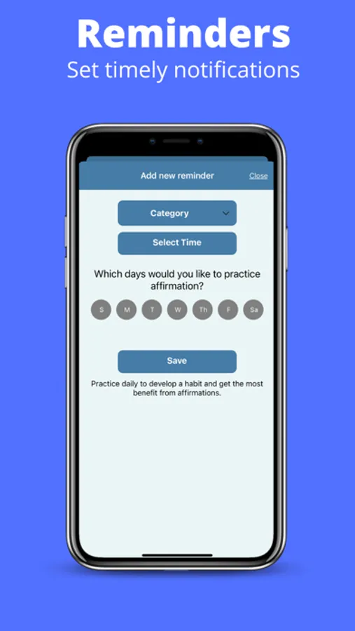 You can set reminders to get notifications as many times a day or a week. You can also take a few minutes of the day and practice affirmations with our play feature. Do it how you wish. Make it your own schedule.