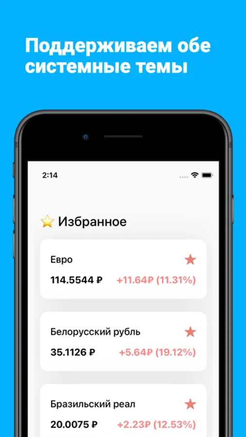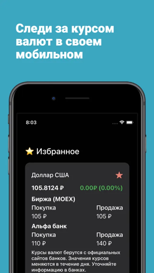 Следи за курсом валют в своем телефоне! Поддерживаем большинство популярных валют. Достаточно добавить валютную пару в избранное, чтобы не терять её в будущем