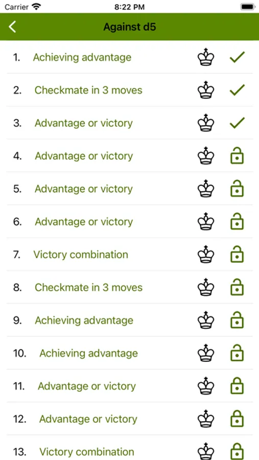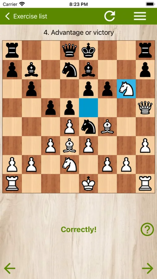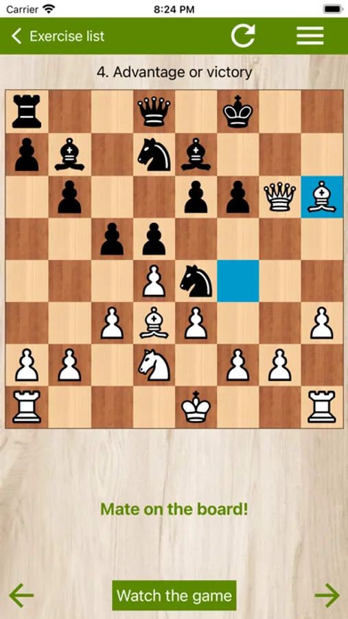 The free version contains 30 interesting puzzles on combinations with victory, achieving advantage and checkmating in several moves.