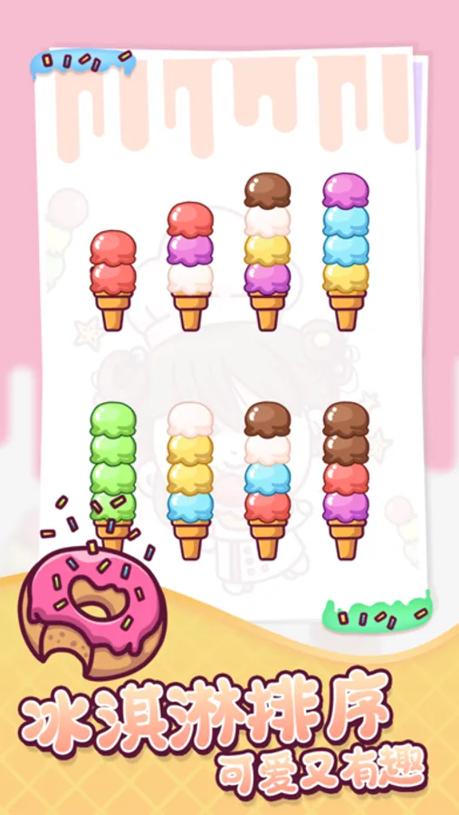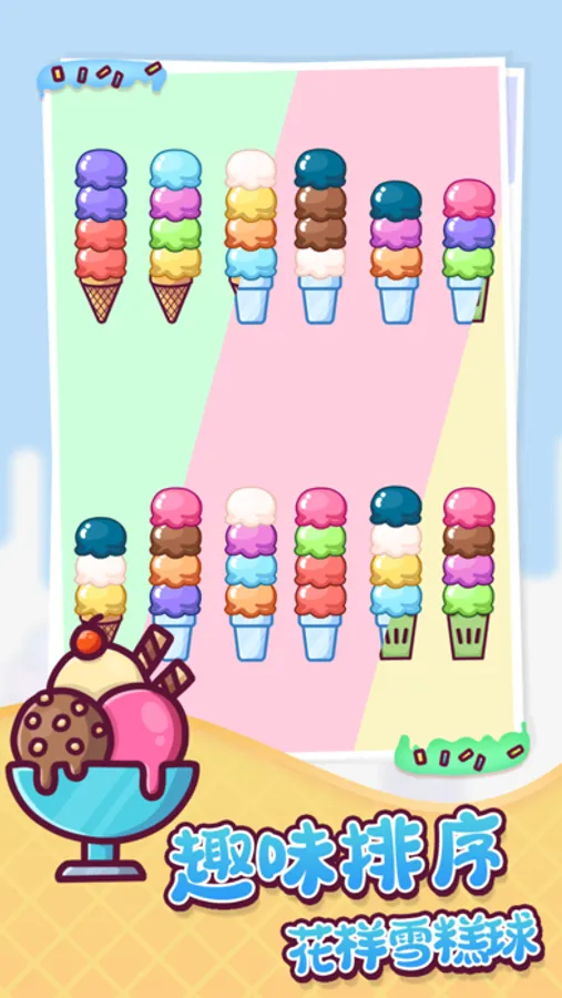 点击冰淇淋,将所有相同的颜色分类到一起就可以啦~