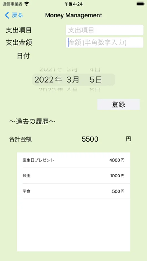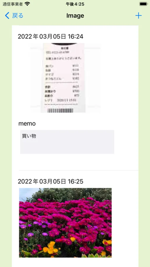画像登録ではレシートを登録したり、思い出の画像を残しておくこともできます。