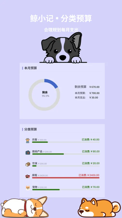 4、预算功能,可以设置每月的支出预算,每天看看,避免超支