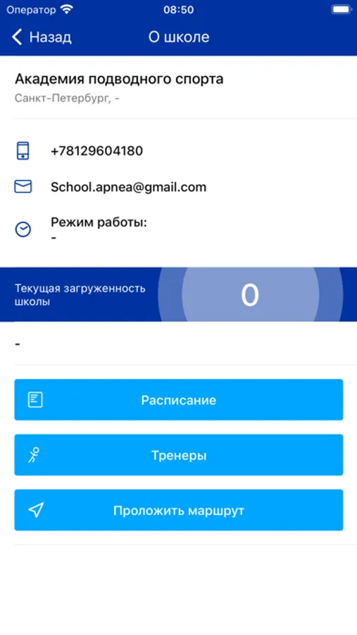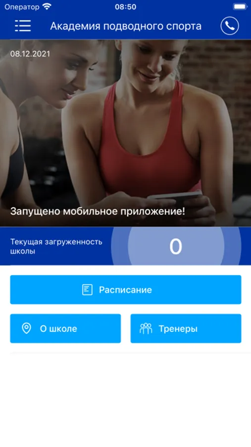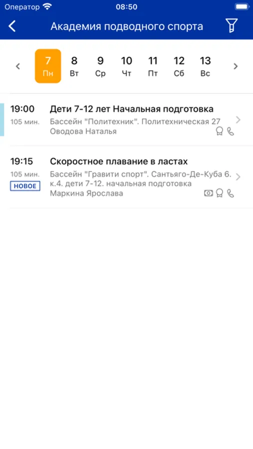 Приложение для записи учеников на групповые тренировки по фридайвингу и скоростному плаванию в ластах, в соответствии с расписанием Академии подводного спорта "Северная Жемчужина".