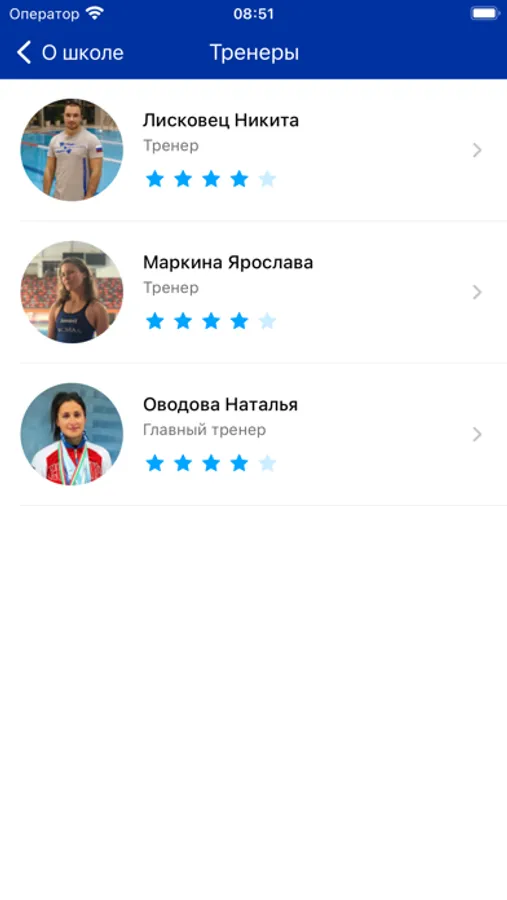 Удобное расписание и распределение по уровню подготовки спортсменов, поможет быстро определиться с тренером и группой.