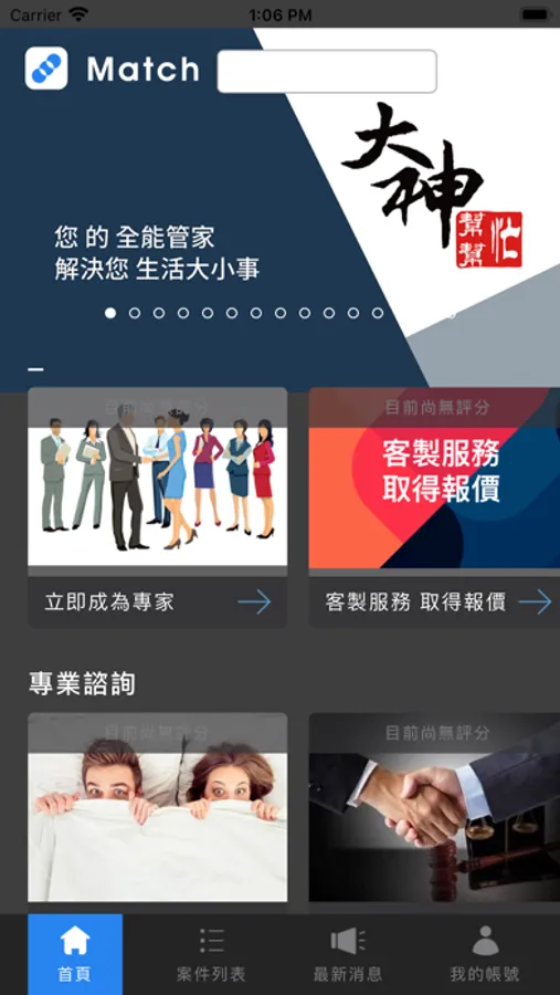 大神幫幫忙提供了購物功能及媒合服務,也可依自己的需求提出想要的服務。