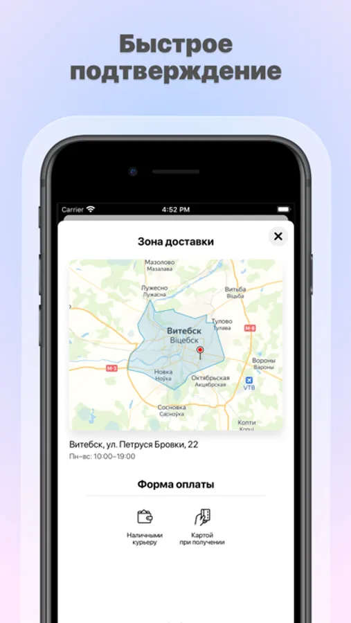 — Быстрый заказ с мгновенным подтверждением через приложение.