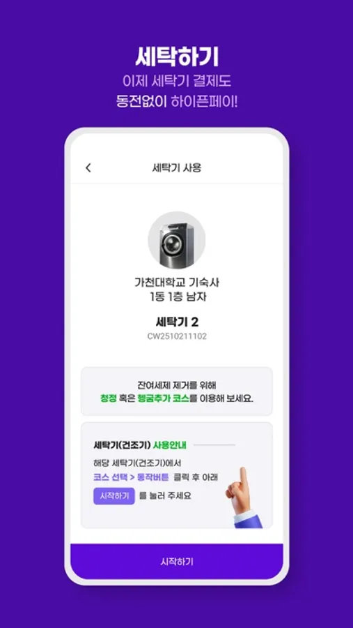 연결된 세탁장비에서 #캐시없이 #카드 없이 바로 결제하고 이용하세요