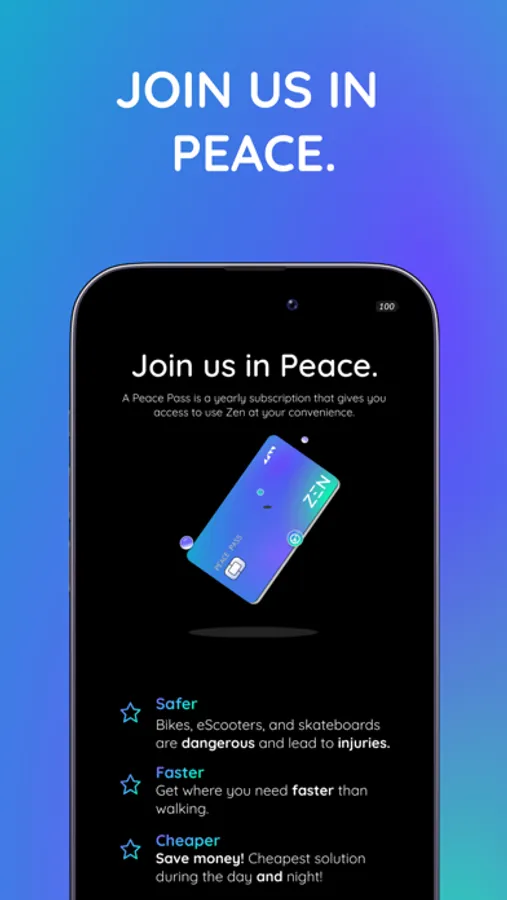 Download the Zen app today and experience the Zen of ridesharing. With Zen, you can get where you need to go, your way, in a safe, convenient, and peaceful way.