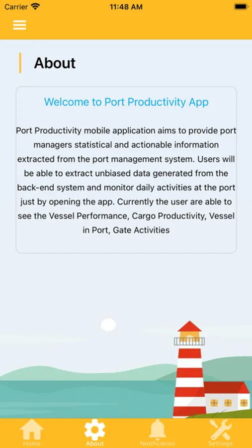 Currently the users are able to see the Vessel Performance, Cargo Productivity, Vessels in Port, Gate Activities, and etc.