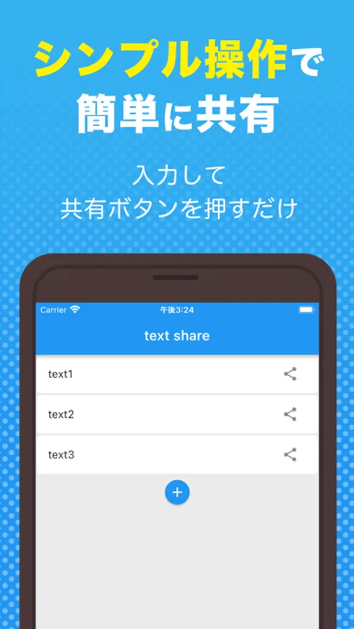 ちょっとしたテキストを設定したアプリに共有できるアプリです。
