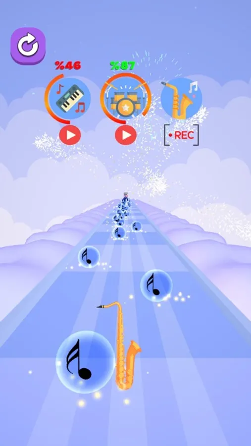 Complete each layer of instrument by collecting the notes.