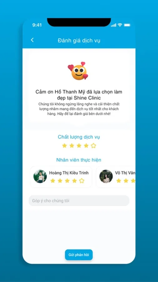 Shine Clinic là ứng dụng hiện đại giúp chị em tiện lợi hơn trên hành trình làm đẹp. Bạn có thể dễ dàng lựa chọn sản phẩm/ dịch vụ làm đẹp, đặt hẹn nhanh chóng với khung giờ phù hợp và nhân viên yêu thích. Chị em sẽ chủ động về thời gian và nhận được nhiều tiện ích hơn khi sử dụng dịch vụ qua ứng dụng Shine Clinic.