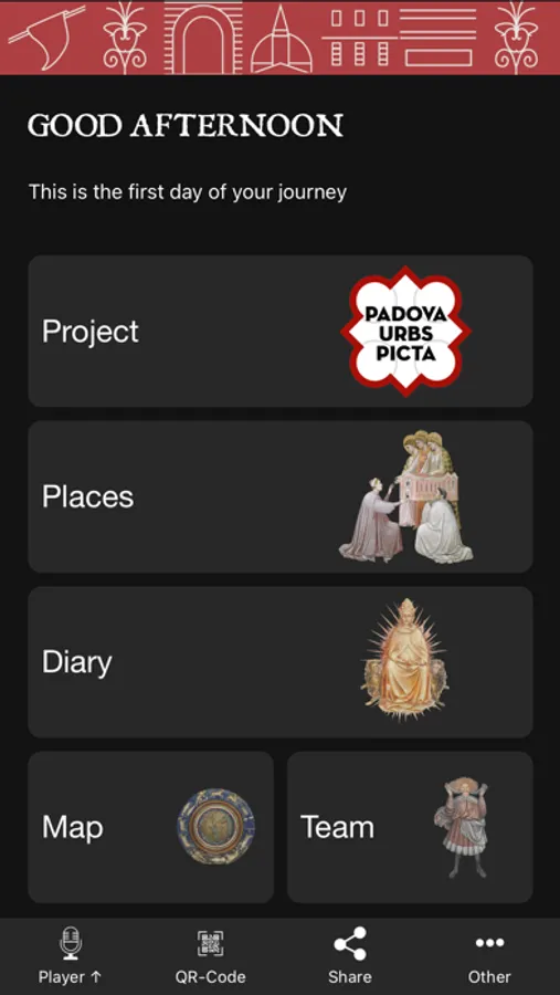 You can view the percentage of completion of activities through the Journal and earn culture points! Get the badges and access the Quiz: only then you can find out which is your medieval Beast and read a story inspired by the events of Padua at that time.