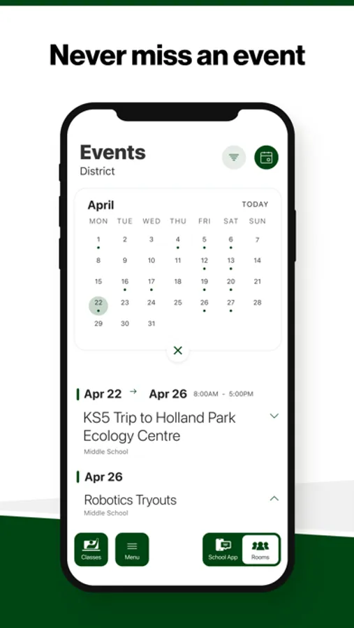 Select your student’s organization within the app and make sure you never miss a message.