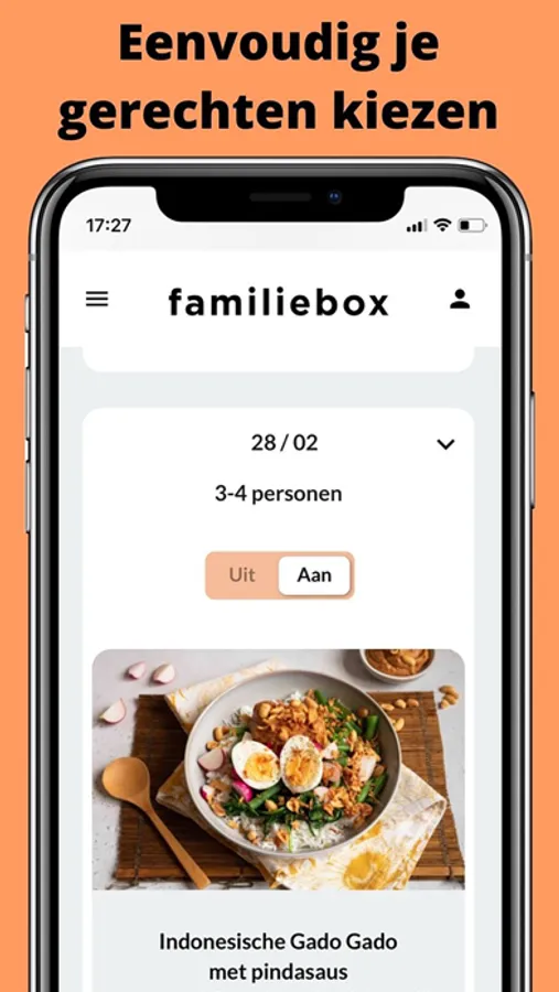 Iedere week biedt Familiebox inspirerende en gezonde gerechten aan die smaakvol zijn door kwaliteit producten en recepten die gemakkelijk te volgen zijn. Alle gerechten worden met zorg samengesteld voor jong en oud, zodat je thuis gemakkelijk lekkere en gezonde maaltijden op tafel zet voor het hele gezin!