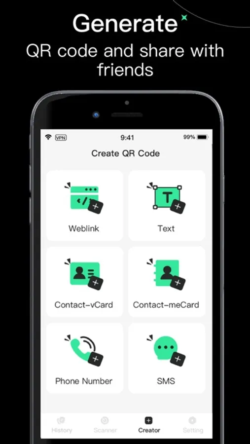 - Scan all types of QR codes
