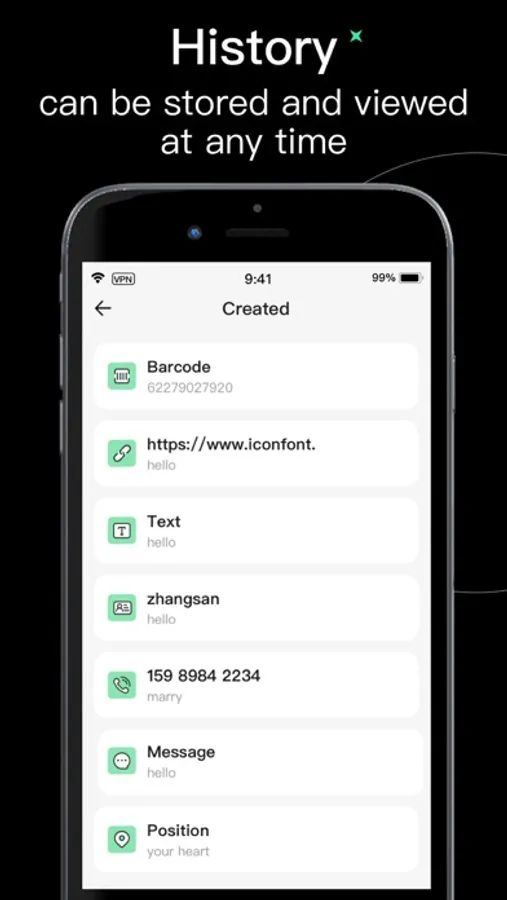 - Create unlimited number of QR codes