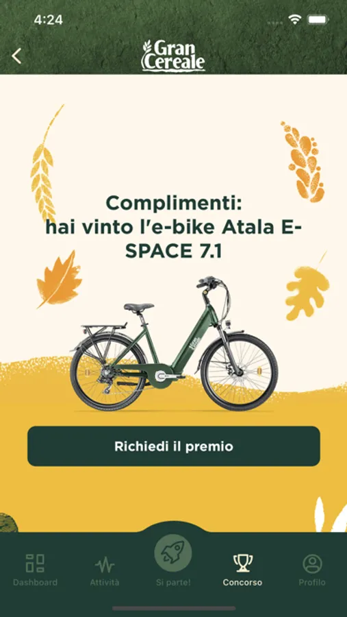– Partecipare al concorso Gran Premio della Natura e vincere fantastici premi. Acquista un prodotto Grancereale e gioca con i dati dello scontrino o con il codice gioco che trovi all’interno delle confezioni: puoi vincere una e-bike Atala E-SPACE 7.1 al giorno! In più, se percorri 10 km in bici, puoi vincere uno dei 5 smartwatch Garmin vívoactive® 4 in palio ogni settimana.