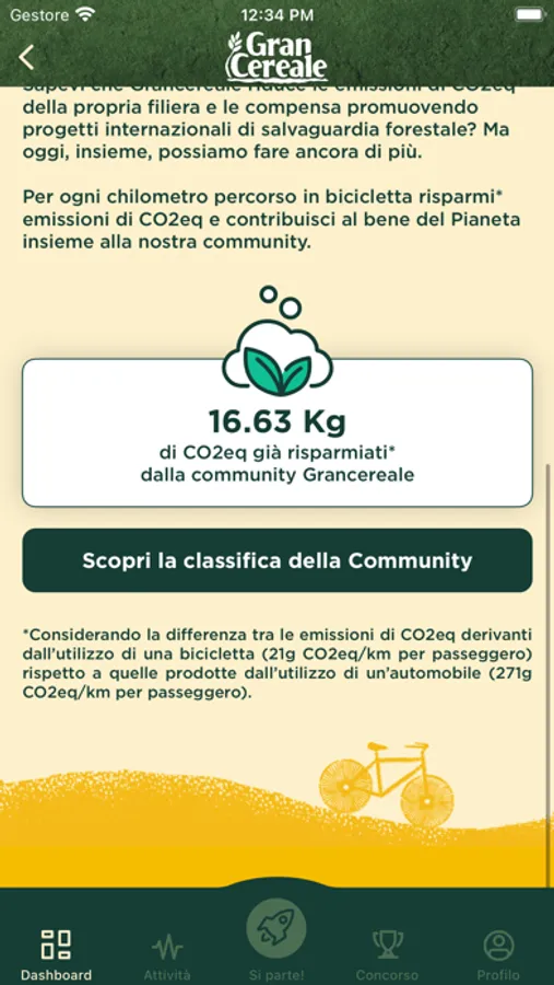 – Scoprire quante emissioni di CO2eq risparmi* per ogni chilometro percorso in bicicletta e contribuire al bene del Pianeta insieme alla community Grancereale.