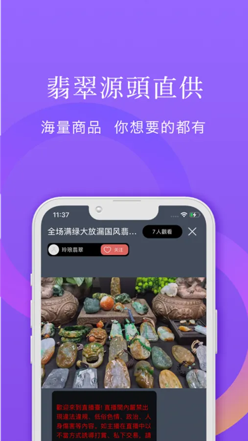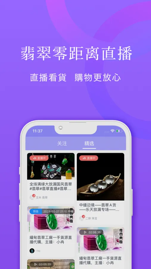聚翡翠玉石銷售、行家品控、專業主播帶貨、鑒定評估為一體,建立從原石采購到設計生產為一體的交易平臺。 集緬甸、雲南、佛山、四會、揭陽